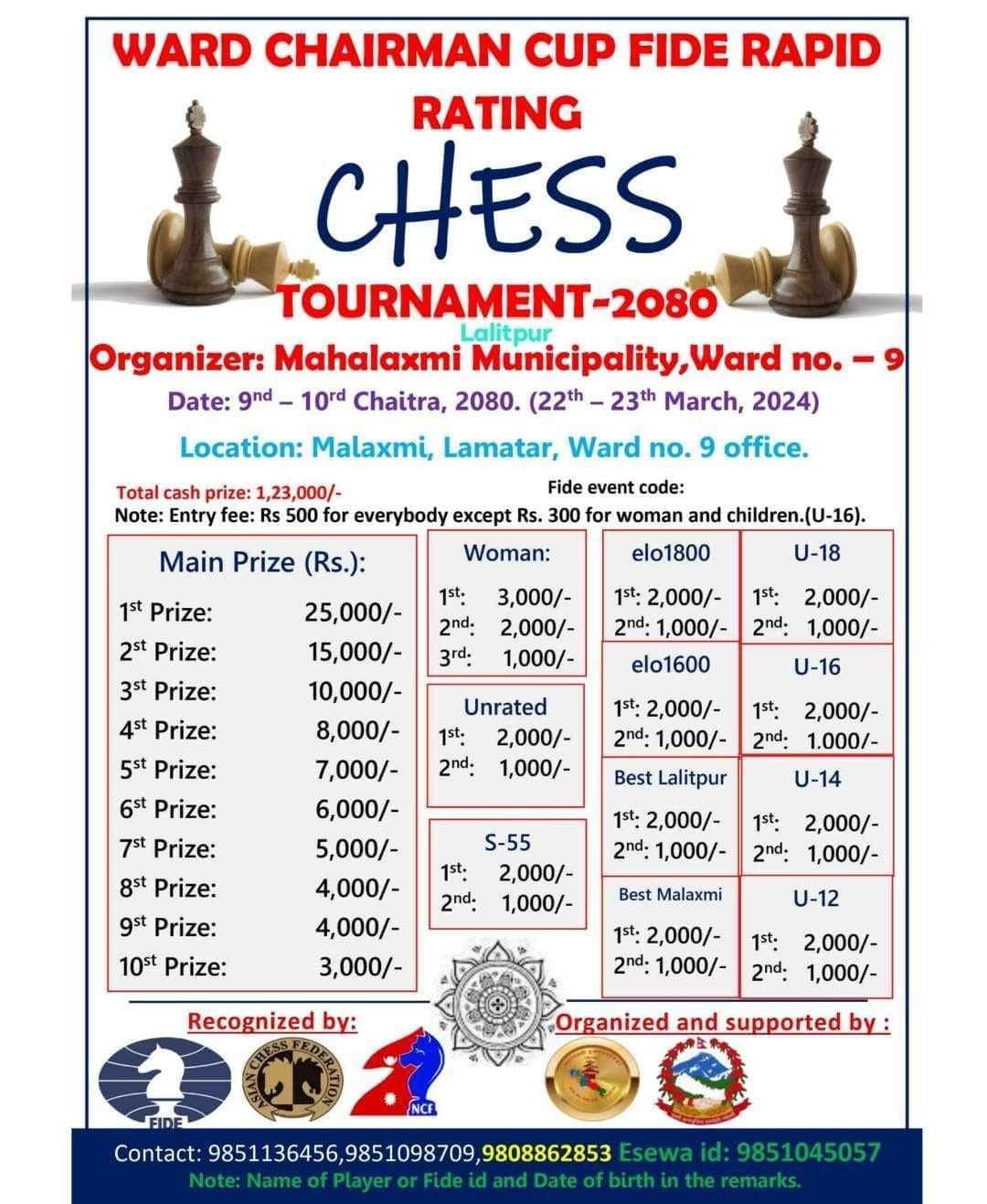 ललितपुर, फागुन २४ महालक्ष्मी नगरपालिका ९ लामाटारमा ‘वडाअध्यक्ष कप खुल्ला बुद्धिचाल प्रतियोगिता—२०८०’ हुने भएकाे छ ।वडाले पहिलोपल्ट काठमाडाैं उक्त प्रतियोगिता आयोजना गर्न लागेकाे हाे । वडाकाे सामाजिक विकास कार्यक्रम अन्तर्गतको…