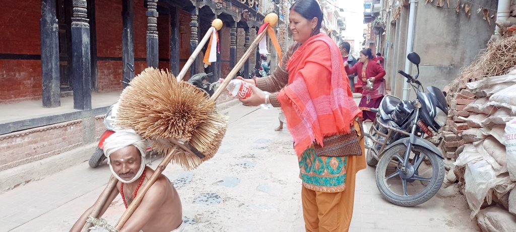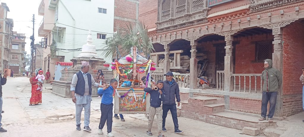 पर्व समापनपूर्व महादेवको मूर्तिलाई खटमा राखेर गाउँ परिक्रमा गराइन्छ । ब्रह्माको रूपमा हात, काँध टाउकोमा दियो वालेर गाउँ परिक्रमा गराइयो । घैटामा छ्वालीको पाइप राखेर पानी छ्प्ने चलन छ । साथै खड्कुलोमा पानी राखेर छर्किँदै घुमाइन्छ ।