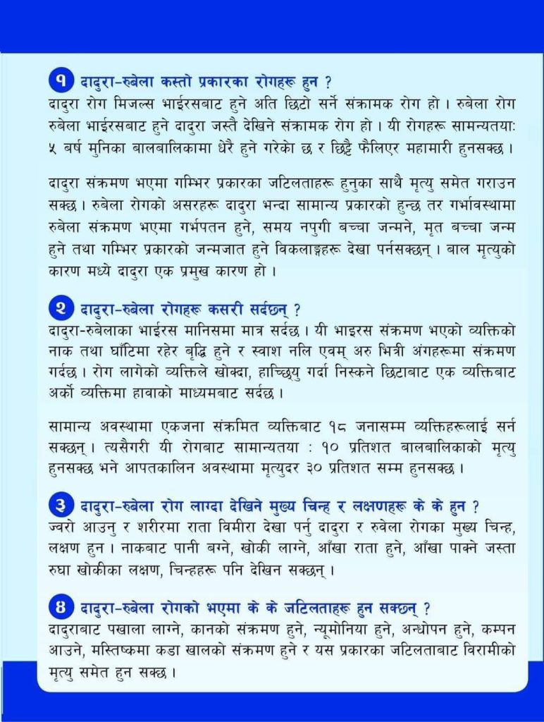 दादुरा रोग मिजल्स भाईरसबाट हुने अतिछिटो सर्ने संक्रामक रोग हो। रुबेला रोग रुबेला भाईरसबाट हुने दादुरा जस्तै देखिने संक्रामक रोग हो।