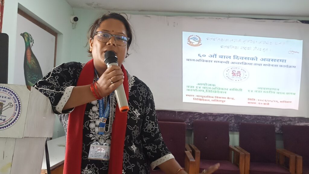 ललितपुर महानगरपालिका १४ का बाल अधिकार समितिकाे आयाेजनामा ६० औं राष्ट्रिय बाल दिवस मनाइएको छ ।